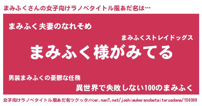 | 男性向けラノベタイトル風あだ名 | 『まみふくの嫁は女の子じゃないと思った?』 |