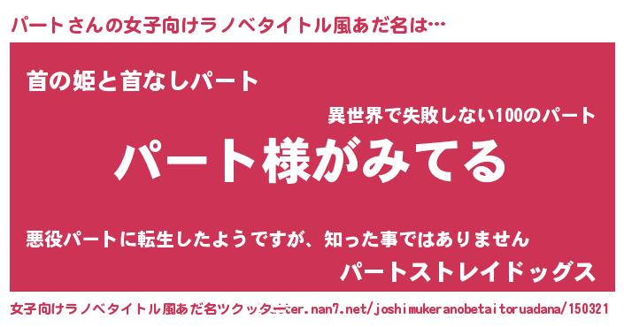 | 意味不明あだ名 | 『とにかく怪しいパート』『自称パート』 |