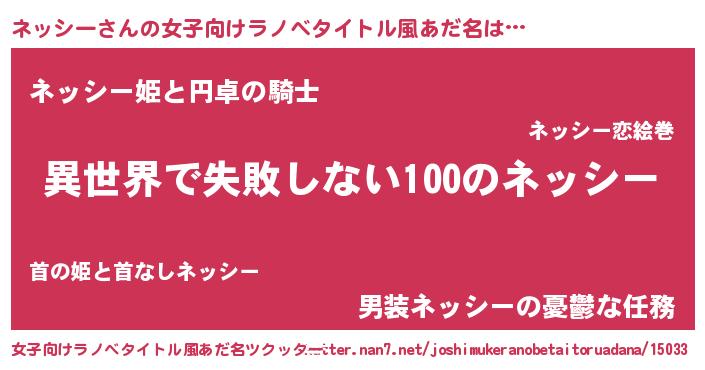 | 男性向けラノベタイトル風あだ名 | 『ネッシーという概念が存在しない退屈な世界 』 |