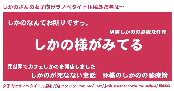 | 男性向けラノベタイトル風あだ名 | 『しかのの嫁は女の子じゃないと思った?』 |