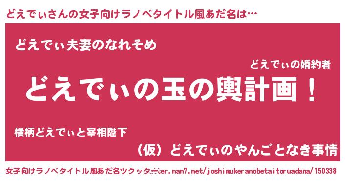 | 男性向けラノベタイトル風あだ名 | 『転生したらどえでぃだった件』 |