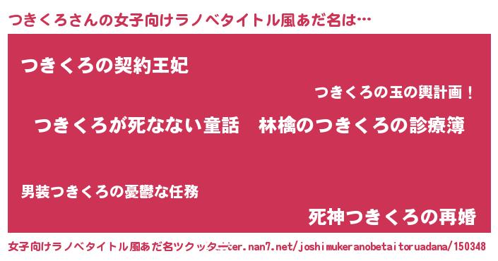 | 意味不明あだ名 | 『住所不定無職つきくろ(4歳)』 |