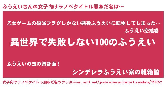| 男性向けラノベタイトル風あだ名 | 『ふうえいという概念が存在しない退屈な世界 』 |