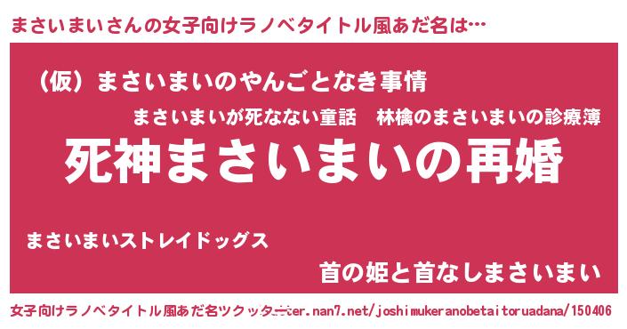 | 男性向けラノベタイトル風あだ名 | 『ノーゲーム・ノーマサイマイ』 |