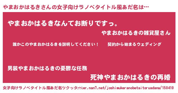 | 男性向けラノベタイトル風あだ名 | 『ヤマオカハルキアートオンライン』 |