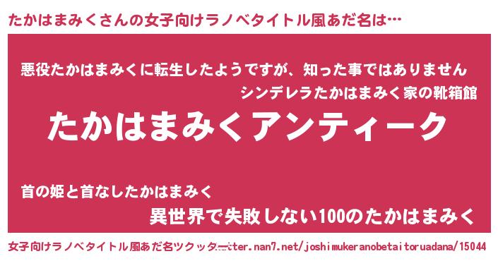 | 胡散臭い通販商品みたいなあだ名 | 『テレビで話題の高麗人参…その名も「たかはまみく」』 |