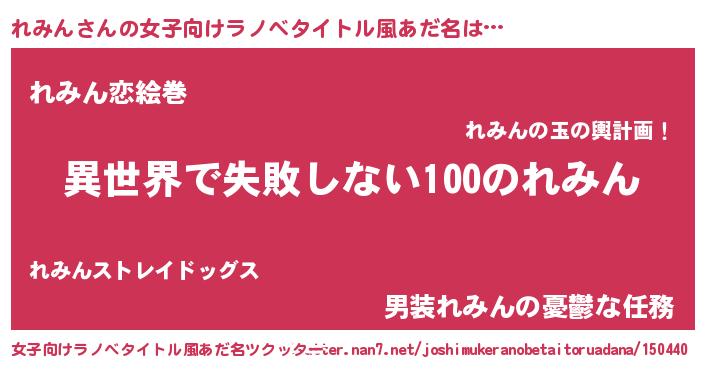| 男性向けラノベタイトル風あだ名 | 『れみんという概念が存在しない退屈な世界 』 |