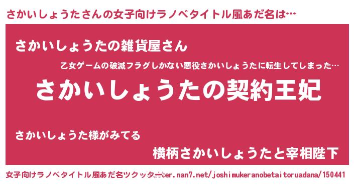 | 男性向けラノベタイトル風あだ名 | 『さかいしょうたという概念が存在しない退屈な世界 』 |