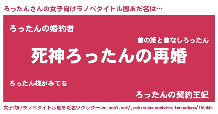 | 男性向けラノベタイトル風あだ名 | 『ノーゲーム・ノーロッタン』 |