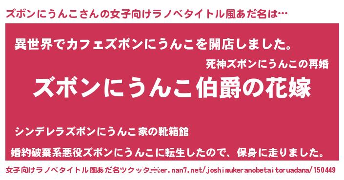 | 男性向けラノベタイトル風あだ名 | 『やはりズボンにうんこの青春ラブコメはまちがっている 』 |