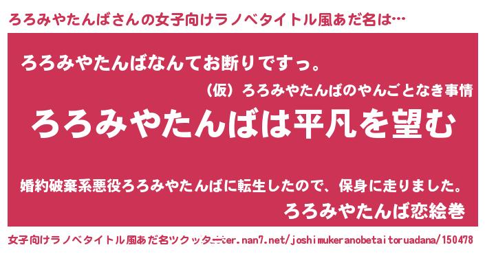 | 男性向けラノベタイトル風あだ名 | 『ダンジョンにろろみやたんばを求めるのは間違っているだろうか』 |