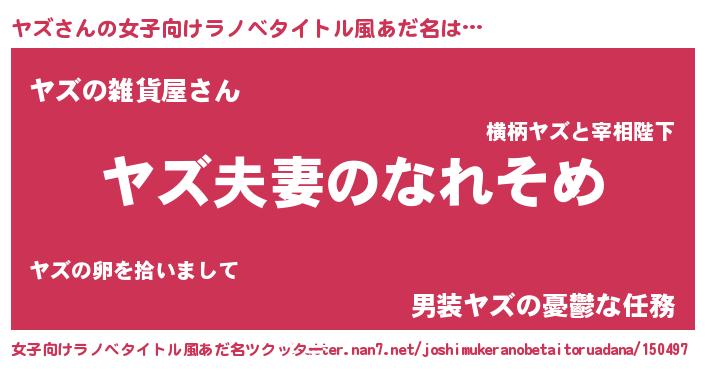 | 男性向けラノベタイトル風あだ名 | 『おまえをオタクにしてやるから、俺をヤズにしてくれ! 』 |
