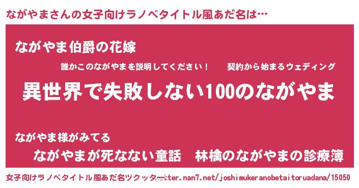 | 男性向けラノベタイトル風あだ名 | 『ながやまという概念が存在しない退屈な世界 』 |