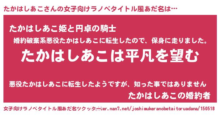 | 男性向けラノベタイトル風あだ名 | 『ダンジョンにたかはしあこを求めるのは間違っているだろうか』 |