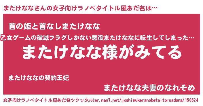 | 男性向けラノベタイトル風あだ名 | 『またけななの嫁は女の子じゃないと思った?』 |