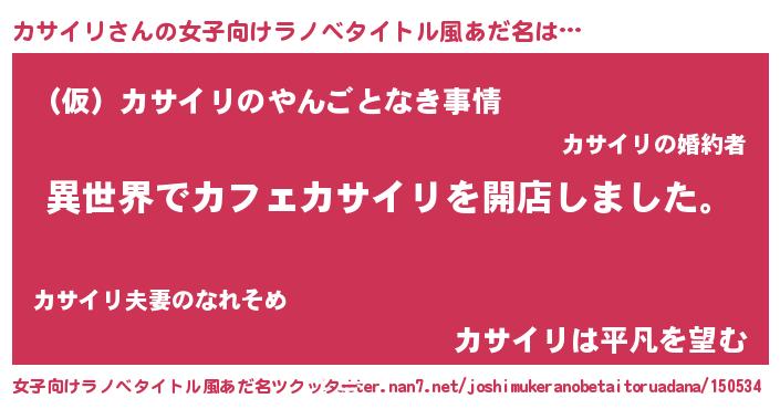 | 男性向けラノベタイトル風あだ名 | 『誰もが恐れるあのカサイリが、ぼくの専属メイドになるようです。』 |