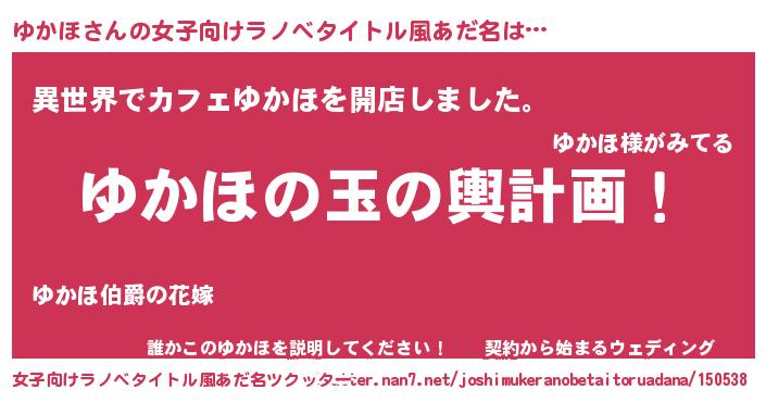 | 胡散臭い通販商品みたいなあだ名 | 『前代未聞の健康食品…その名も「ゆかほ」』 |