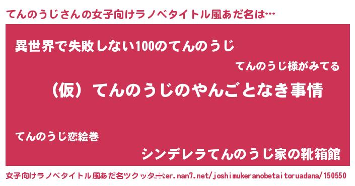 | 男性向けラノベタイトル風あだ名 | 『てんのうじの憂鬱』『緋弾のテンノウジ』 |
