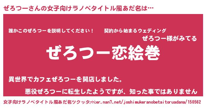 | ヒーロー風カッコイイあだ名 | 『友情の使者ぜろつー』『仮面ゼロダー』 |