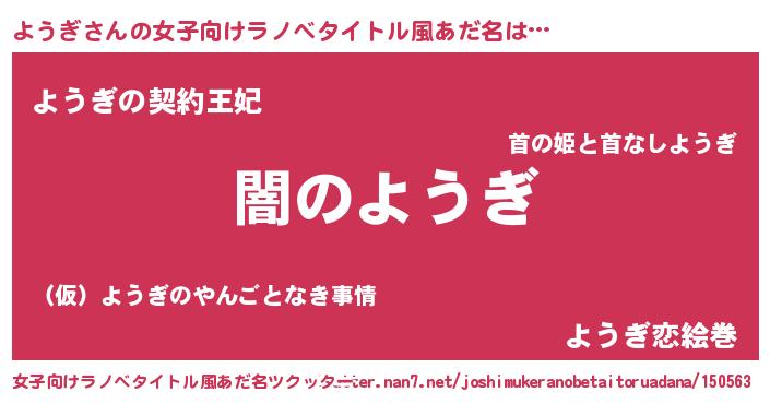 | 意味不明あだ名 | 『自称ようぎ』『永久保存ようぎ』 |
