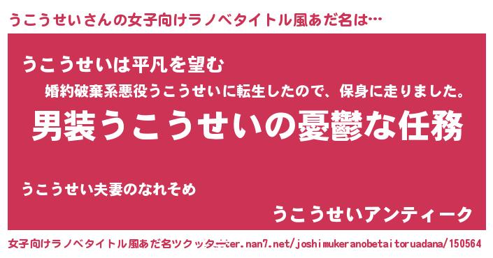 | 意味不明あだ名 | 『とにかく怪しいうこうせい』 |