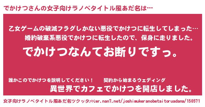 | 男性向けラノベタイトル風あだ名 | 『魔法科高校のでかけつ』 |
