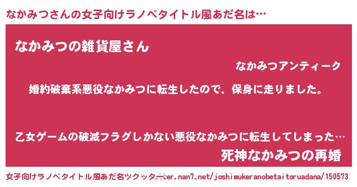 | 男性向けラノベタイトル風あだ名 | 『ナカミツスレイヤー』 |
