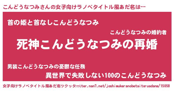 | 男性向けラノベタイトル風あだ名 | 『ノーゲーム・ノーコンドウナツミ』 |