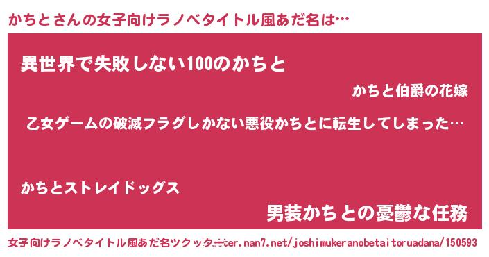 | 男性向けラノベタイトル風あだ名 | 『魔弾の王とかちと』 |