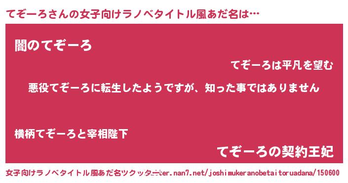 | 男性向けラノベタイトル風あだ名 | 『この素晴らしい世界にてぞーろを!』 |