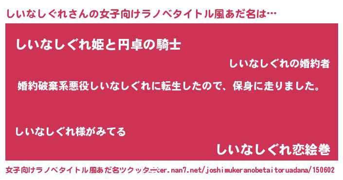 | 胡散臭い通販商品みたいなあだ名 | 『必ず成功するブレスレット…その名も「しいなしぐれ」』 |
