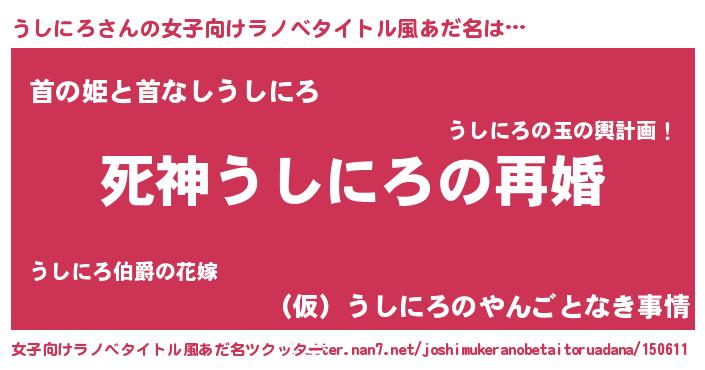 | 欧米人風あだ名 | 『ダニエルうしにろ』『マイケルうしにろ』 |