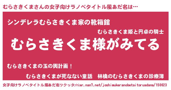 | 胡散臭い通販商品みたいなあだ名 | 『全米が絶賛したサプリメント…その名も「むらさきくま」』 |