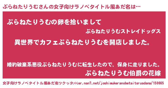 | ヘコむあだ名 | 『ぷらねたりうむ(小並感)』『ぷらっ子』 |