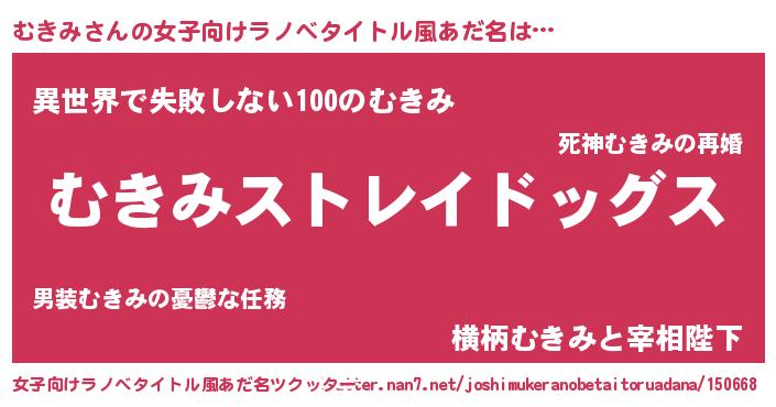 | 意味不明あだ名 | 『自称むきみ』『永久保存むきみ』 |