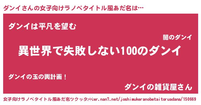 | 胡散臭い通販商品みたいなあだ名 | 『絶対に幸福をもたらす水素水…その名も「ダンイ」』 |