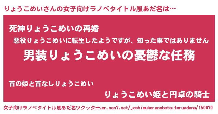 | ヘコむあだ名 | 『りょにー』『なまこ酢』『りょを』 |