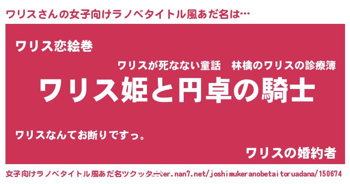 | 男性向けラノベタイトル風あだ名 | 『ワリスの憂鬱』『魔弾の王とワリス』 |