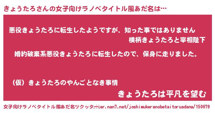 | 男性向けラノベタイトル風あだ名 | 『キョウタロスレイヤー』 |