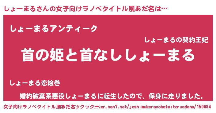 | 男性向けラノベタイトル風あだ名 | 『はたらくしょーまるさま!』 |