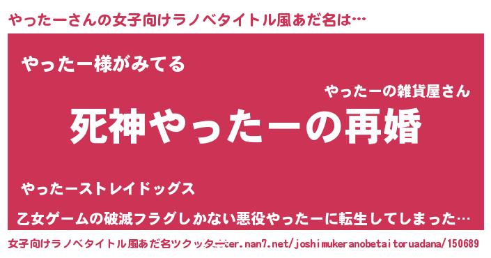 | 男性向けラノベタイトル風あだ名 | 『ノーゲーム・ノーヤッター』 |