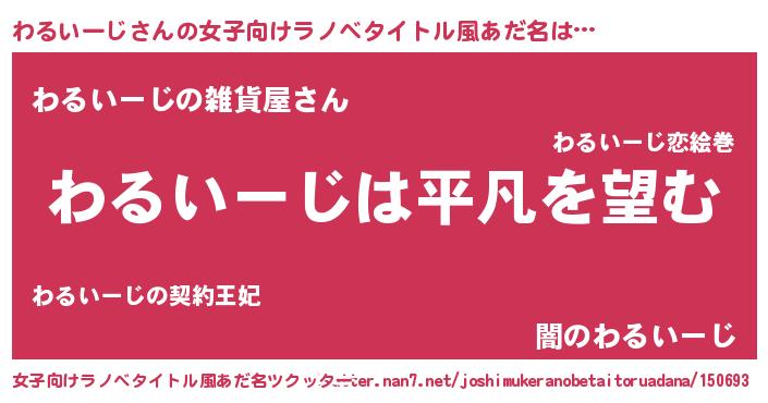 | 胡散臭い通販商品みたいなあだ名 | 『信頼と実績のネックレス…その名も「わるいーじ」』 |