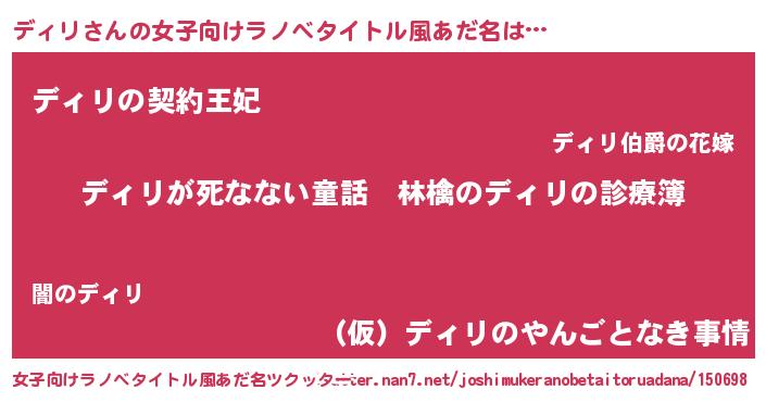 | ヒーロー風カッコイイあだ名 | 『仮面ディダー』『ネオディリ』 |