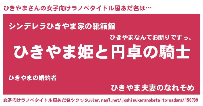 | 男性向けラノベタイトル風あだ名 | 『ヒキヤマアートオンライン』 |