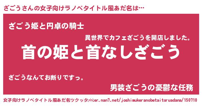 | 男性向けラノベタイトル風あだ名 | 『はたらくざごうさま!』 |