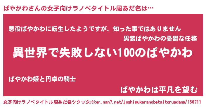 | 男性向けラノベタイトル風あだ名 | 『ばやかわという概念が存在しない退屈な世界 』 |