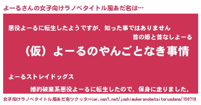 | 胡散臭い通販商品みたいなあだ名 | 『必ず成功する水晶球…その名も「よーる」』 |