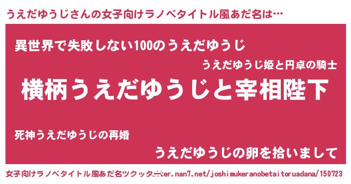 | 胡散臭い通販商品みたいなあだ名 | 『来世でも幸せになれる水素水…その名も「うえだゆうじ」』 |