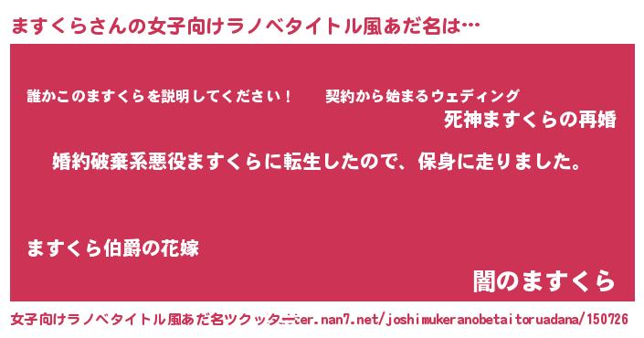 | 胡散臭い通販商品みたいなあだ名 | 『必ず成功する霊験あらたかなお札…その名も「ますくら」』 |