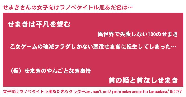 | 意味不明あだ名 | 『住所不定無職せまき(68歳)』『自称せまき』 |